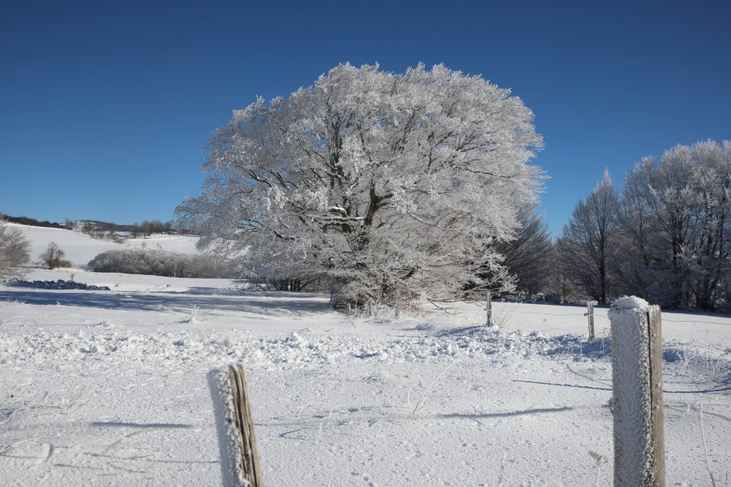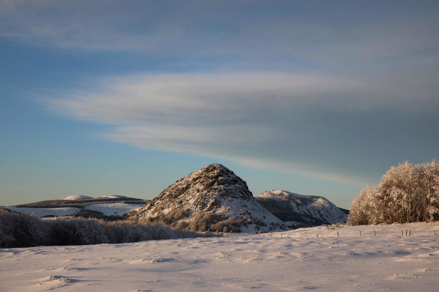 Week-end de randonnée à raquettes dans le massif central, avec une nuit insolite en bivouac.